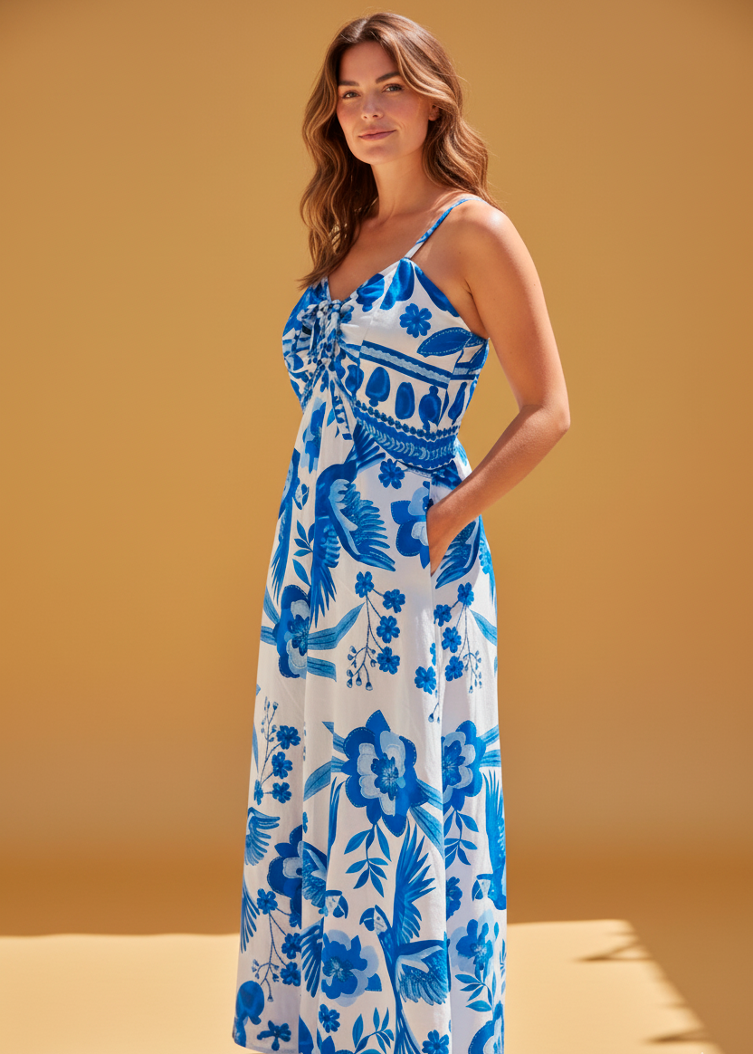 O must-have do seu verão! Leve, com estampa vibrante de inspiração tropical e detalhes de amarração no busto. Perfeito para um look fresco e deslumbrante. Tamanho único e veste até o 44.